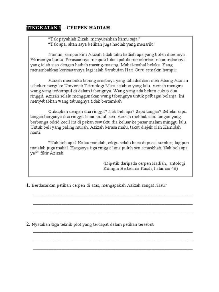 Latihan Komsas Drama Hadiah Tingkatan 1 - Drama Hadiah Tingkatan 1 Other Quizizz. Play this game to review other. Latihan sejarah bab 1 ting 1 kuiz.